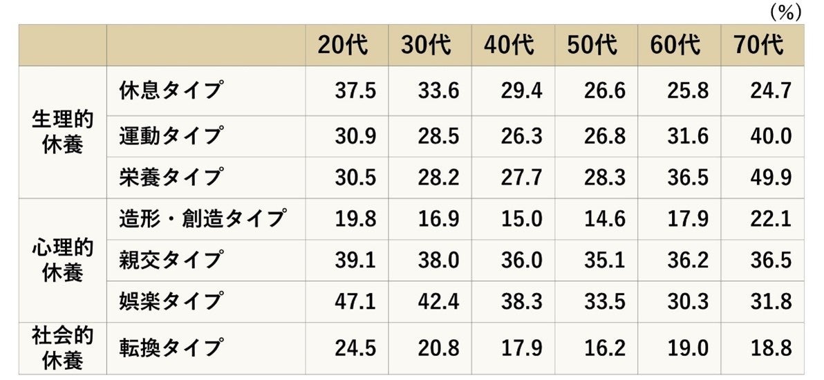 ◇各世代で休養の7タイプは多様化を見せる中、50代が最も休養下手な状況に